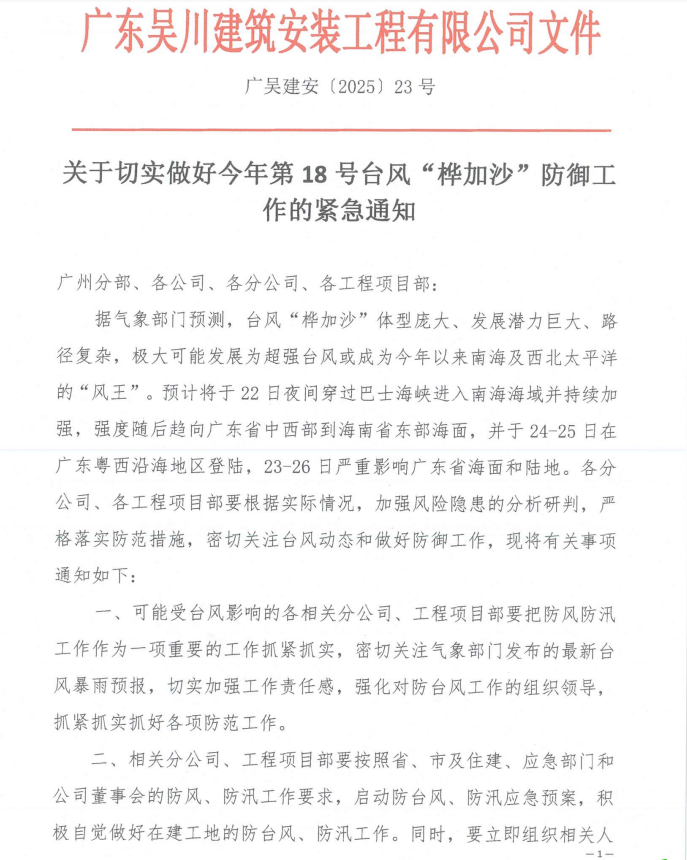 關于做好今年第18號臺風“樺加沙”防御工作的緊急的通知